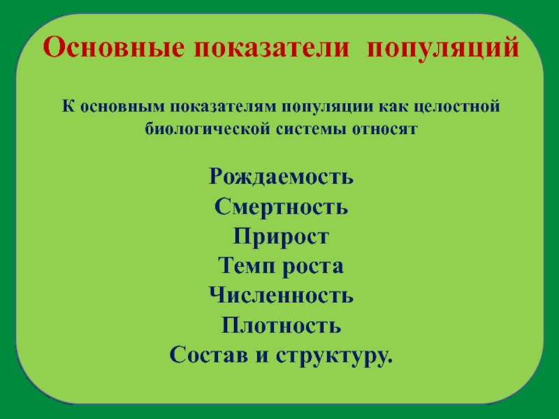 Слайд 10Основные показатели популяций