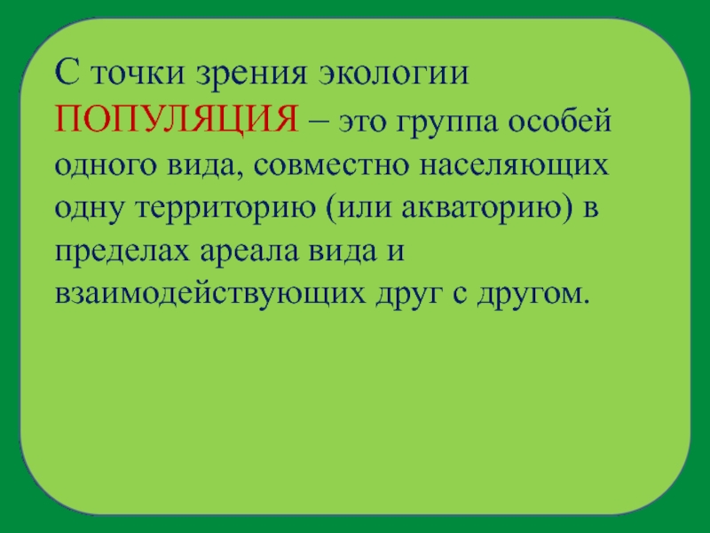 Слайд 2С точки зрения экологии ПОПУЛЯЦИЯ – это группа особей одного