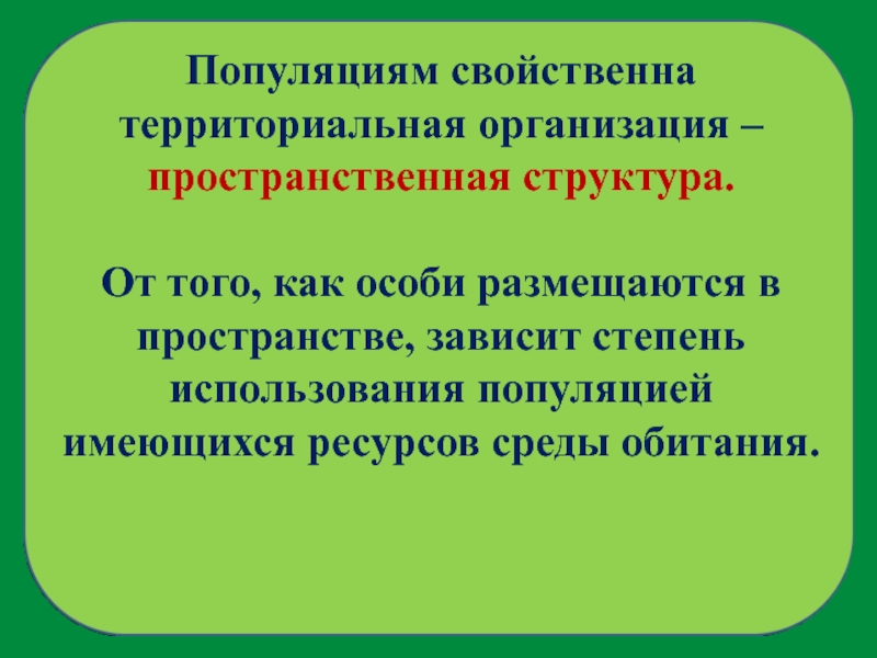 Слайд 16Популяциям свойственна территориальная организация – пространственная структура.
