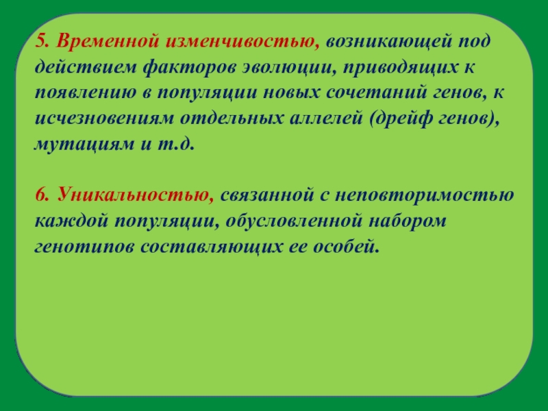 Слайд 95. Временной изменчивостью, возникающей под действием факторов эволюции, приводящих к
