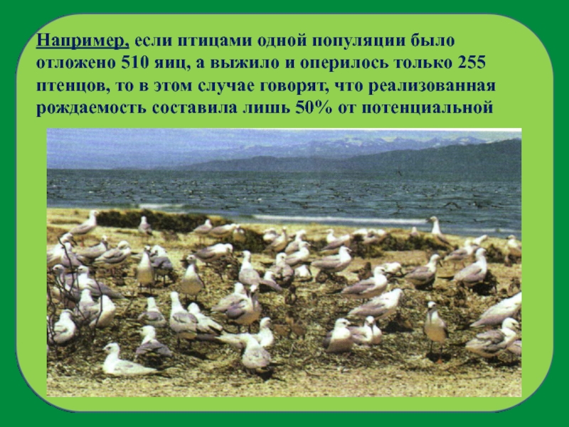 Слайд 12Например, если птицами одной популяции было отложено 510 яиц, а