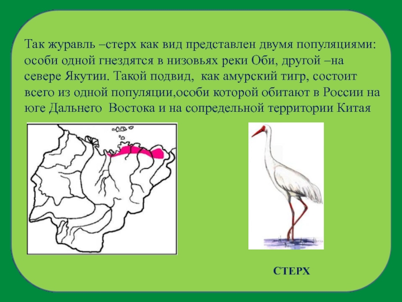 Слайд 4Так журавль –стерх как вид представлен двумя популяциями: особи одной