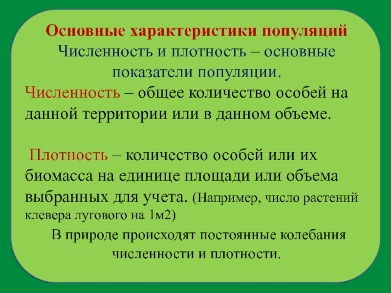 Слайд 14Основные характеристики популяций