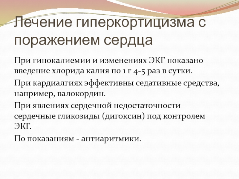 Слайд 16Лечение гиперкортицизма с поражением сердца