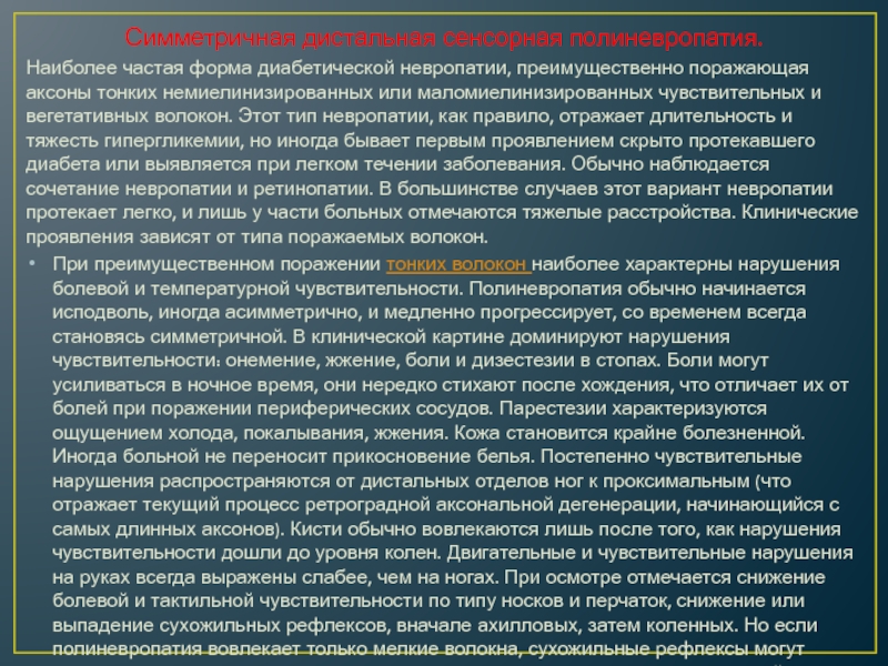 Слайд 7Симметричная дистальная сенсорная полиневропатия.
