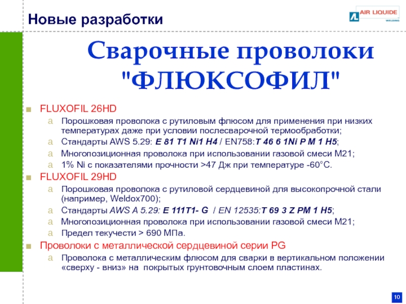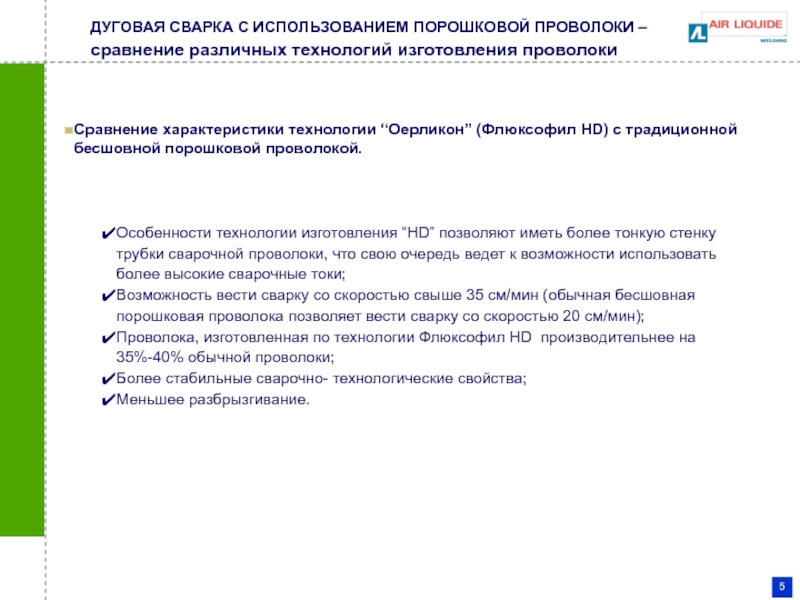 Гибкость в выборе состава флюсовой сердцевины рутиловый, металлический или основной флюс;