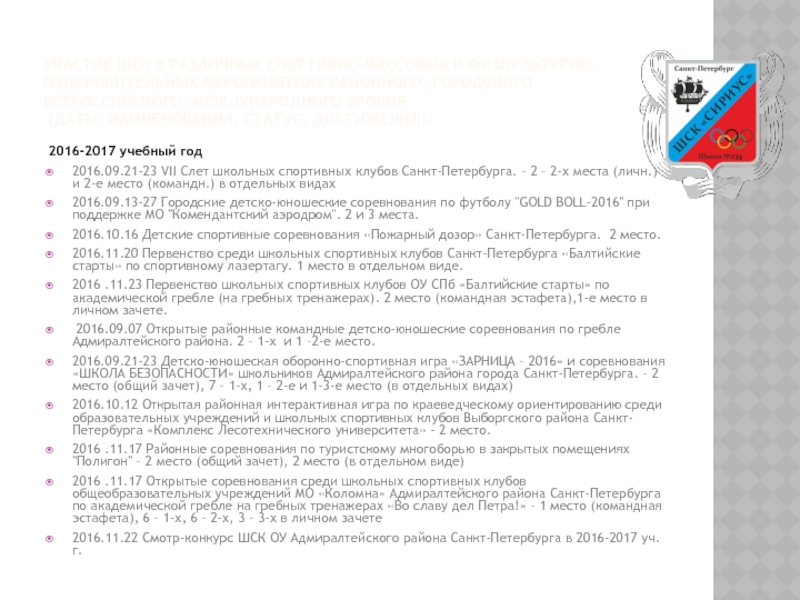 2016.11.22 Смотр-конкурс ШСК ОУ Адмиралтейского района Санкт-Петербурга в 2016-2017 уч.г.
