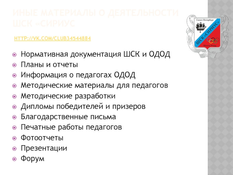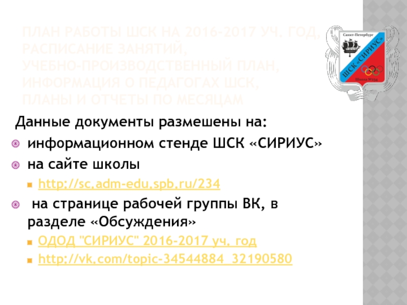 http://vk.com/club34544884 /рабочая группа ШСК «СИРИУС»/