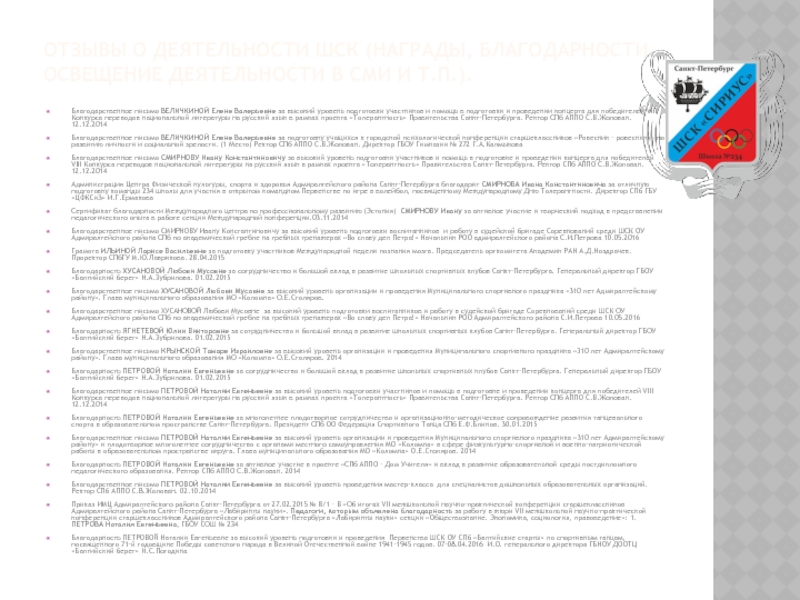 Слайд 23Отзывы о деятельности ШСК (награды, благодарности, освещение деятельности в СМИ