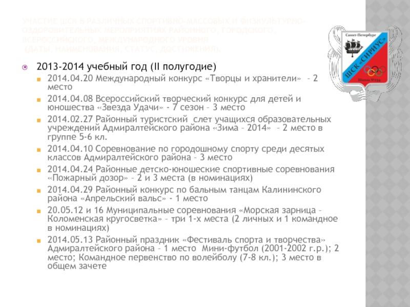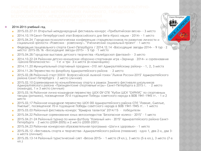 Слайд 25Иные материалы о деятельности ШСК «СИРИУС