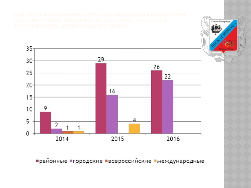 Слайд 20Участие ШСК в различных спортивно-массовых и физкультурно-