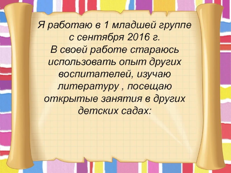 Слайд 7Я работаю в 1 младшей группе с сентября 2016 г.