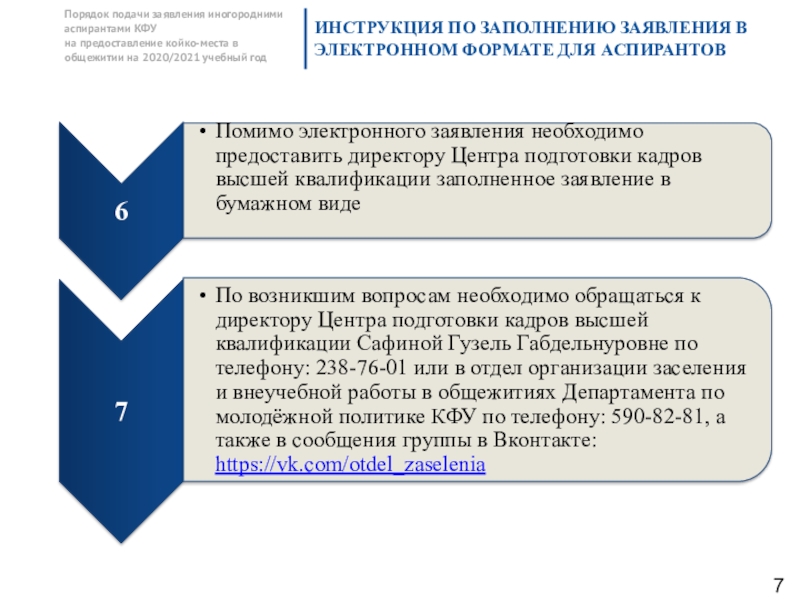 7ИНСТРУКЦИЯ ПО ЗАПОЛНЕНИЮ ЗАЯВЛЕНИЯ В ЭЛЕКТРОННОМ ФОРМАТЕ ДЛЯ АСПИРАНТОВ  Порядок подачи заявления иногородними аспирантами КФУ на