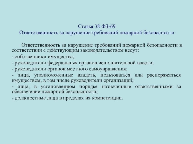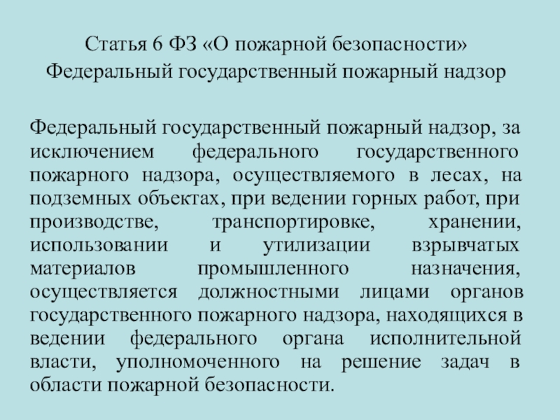 Слайд 5Статья 6 ФЗ «О пожарной безопасности»