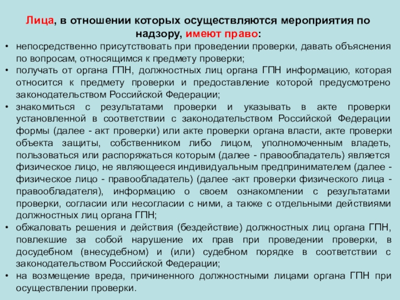 Слайд 11Лица, в отношении которых осуществляются мероприятия по надзору, имеют право: