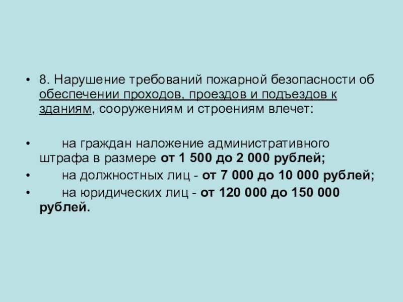 Слайд 378. Нарушение требований пожарной безопасности об обеспечении проходов, проездов и