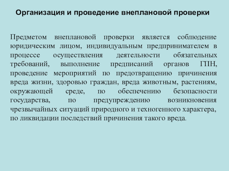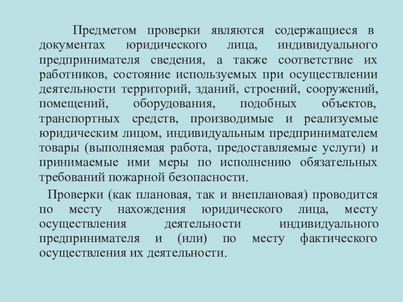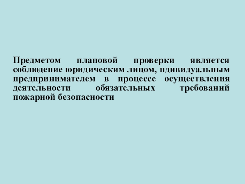 Слайд 12Предметом плановой проверки является соблюдение юридическим лицом, ндивидуальным предпринимателем в