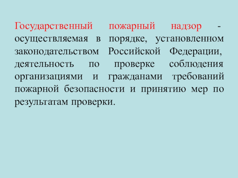 Слайд 3Государственный пожарный надзор - осуществляемая в порядке, установленном законодательством Российской