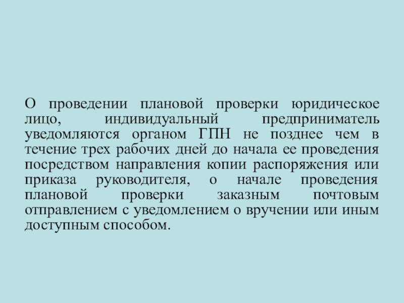 О проведении плановой проверки юридическое лицо, индивидуальный предприниматель уведомляются органом