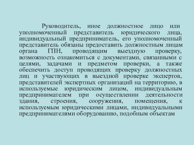 юридического лица, индивидуальному предпринимателю, его уполномоченному представителю присутствовать при проведении