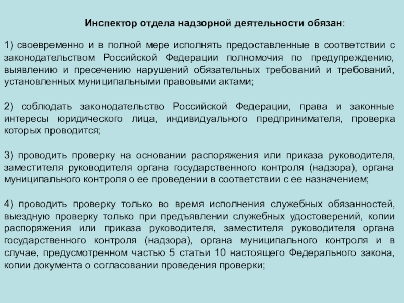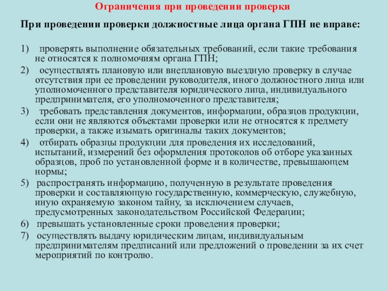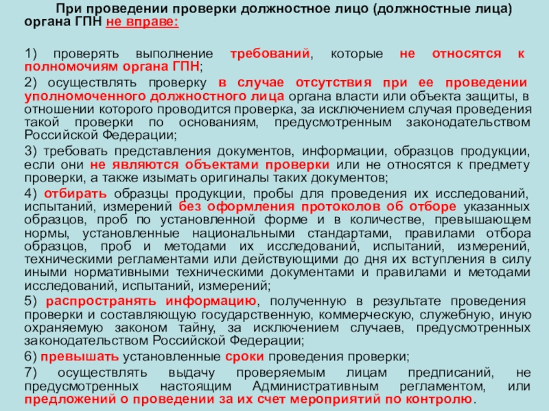 Слайд 10 При проведении проверки должностное лицо (должностные лица) органа ГПН