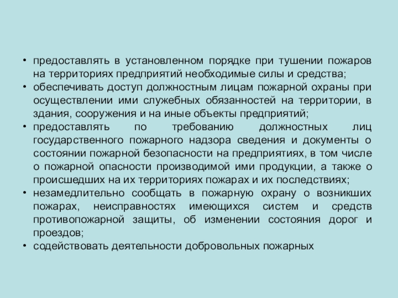 вносить в органы власти предложения об осуществлении мероприятий по обеспечению пожарной безопасности;