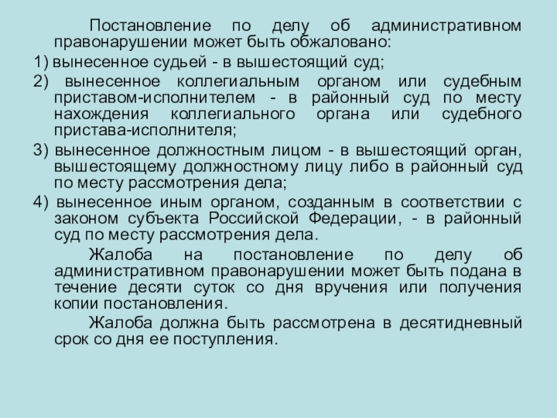 Слайд 47 Постановление по делу об административном правонарушении может быть обжаловано: