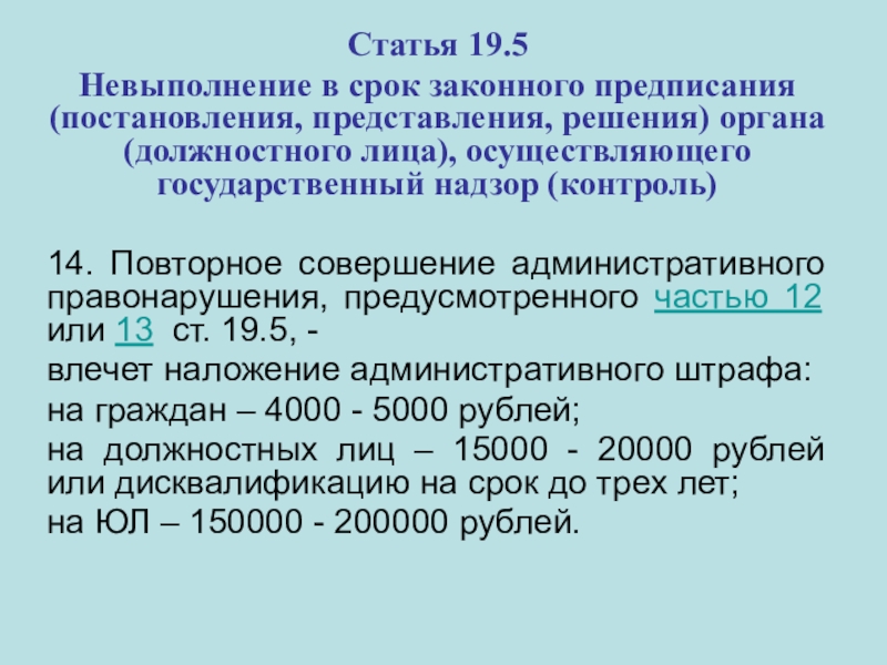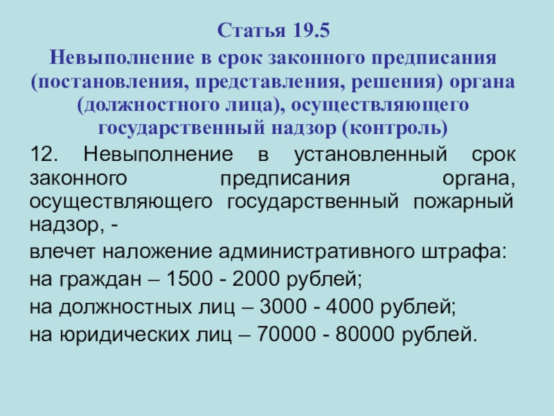 Невыполнение в срок законного предписания (постановления, представления, решения) органа