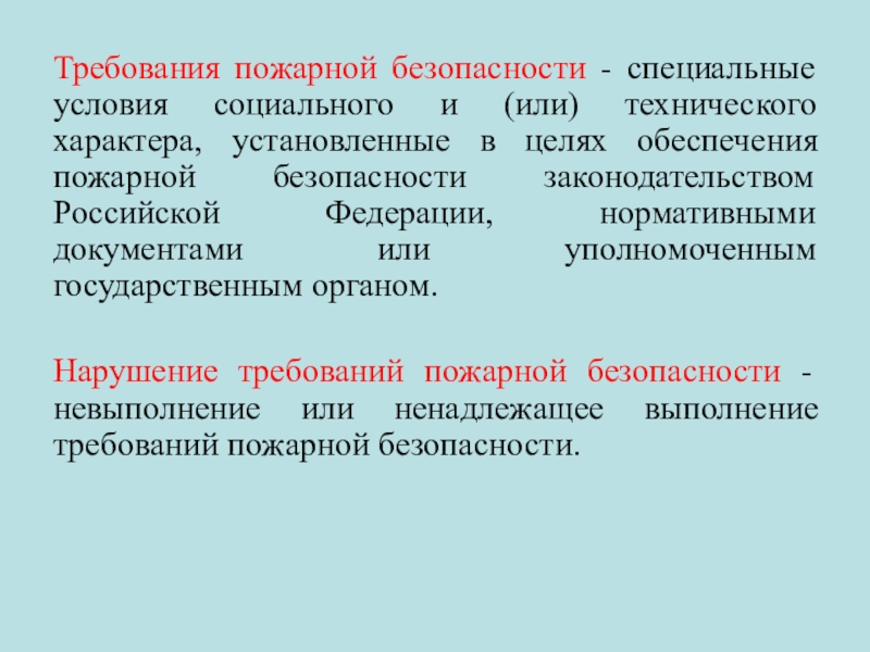 Слайд 4Требования пожарной безопасности - специальные условия социального и (или) технического