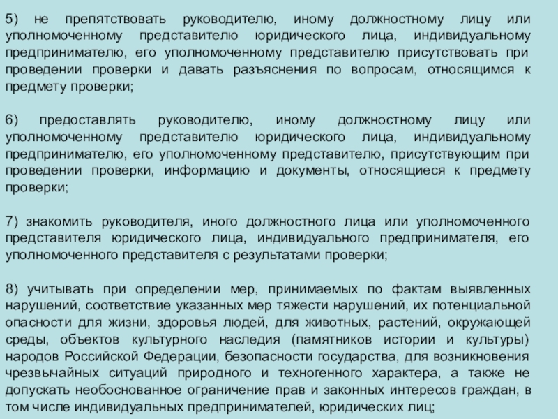 Слайд 75) не препятствовать руководителю, иному должностному лицу или уполномоченному представителю
