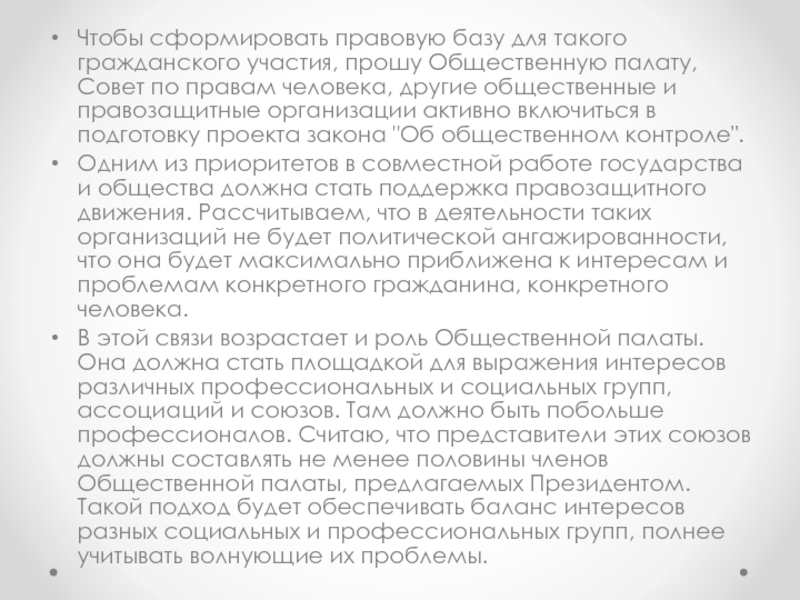 Слайд 7Чтобы сформировать правовую базу для такого гражданского участия, прошу Общественную