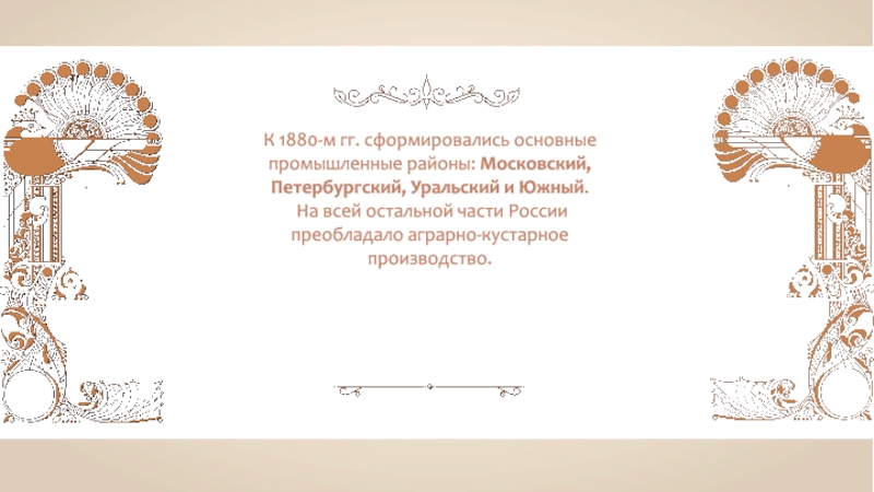 Слайд 25К 1880-м гг. сформировались основные промышленные районы: Московский, Петербургский, Уральский