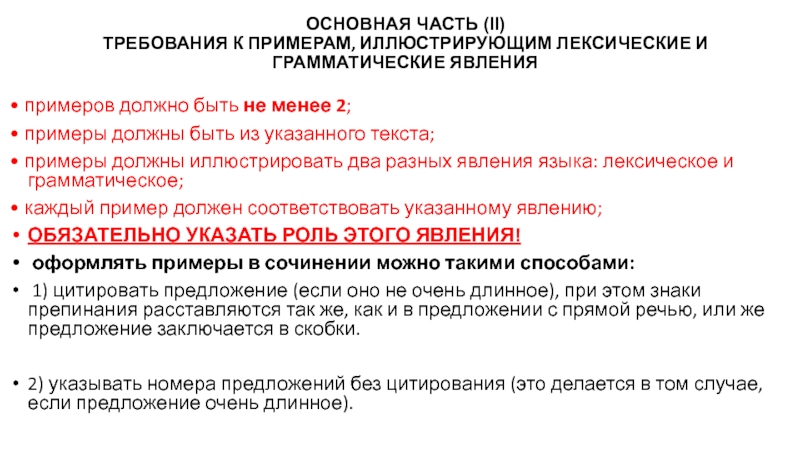 ТРЕБОВАНИЯ К ПРИМЕРАМ, ИЛЛЮСТРИРУЮЩИМ ЛЕКСИЧЕСКИЕ И ГРАММАТИЧЕСКИЕ ЯВЛЕНИЯ
