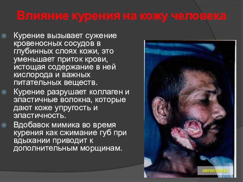 Слайд 16Влияние курения на кожу человека
