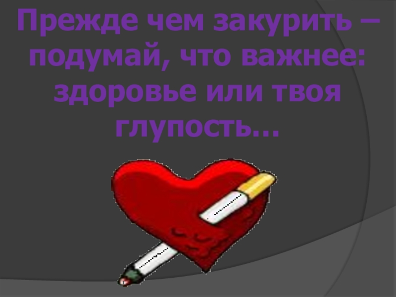 Слайд 18Прежде чем закурить – подумай, что важнее: здоровье или твоя