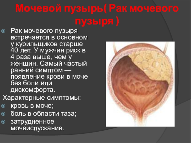 Слайд 12Мочевой пузырь( Рак мочевого пузыря )