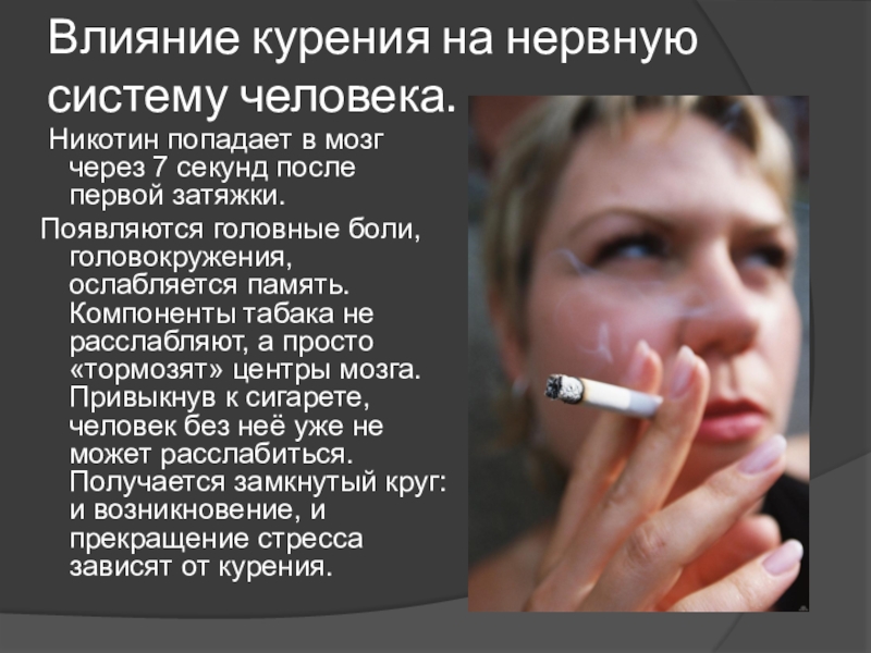 Слайд 15Влияние курения на нервную систему человека.