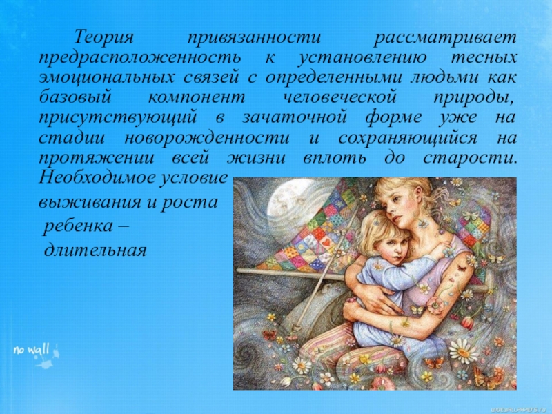 Теория привязанности рассматривает предрасположенность к установлению тесных эмоциональных связей с
