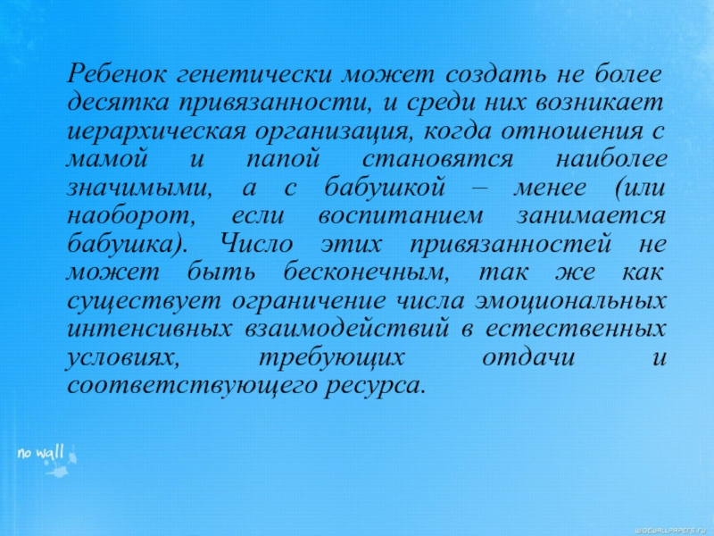 Ребенок генетически может создать не более десятка привязанности, и среди
