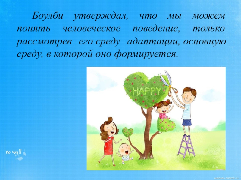 Слайд 22 Боулби утверждал, что мы можем понять человеческое поведение, только рассмотрев