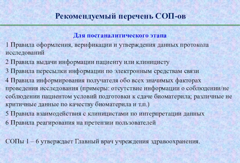 Слайд 21Рекомендуемый перечень СОП-ов