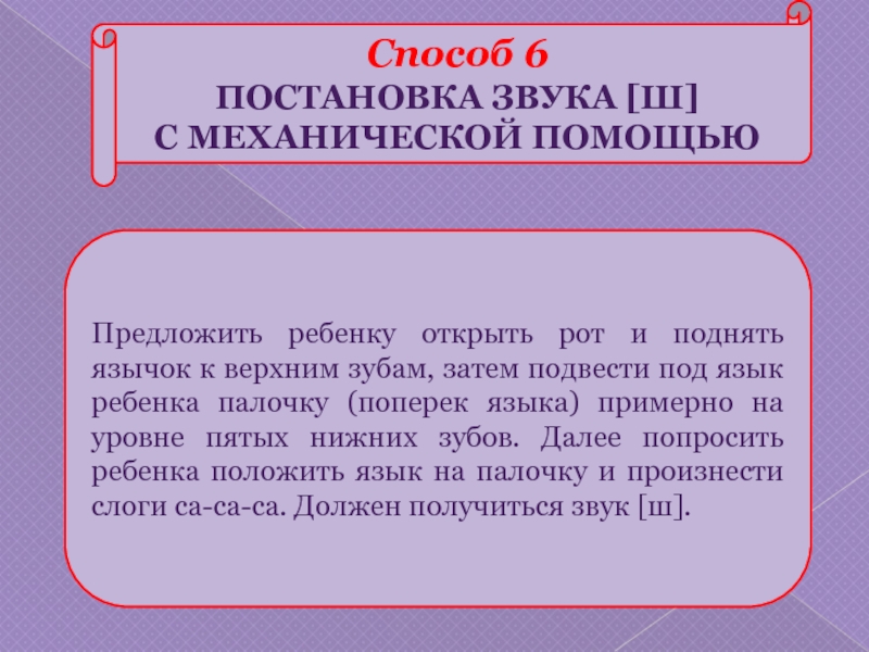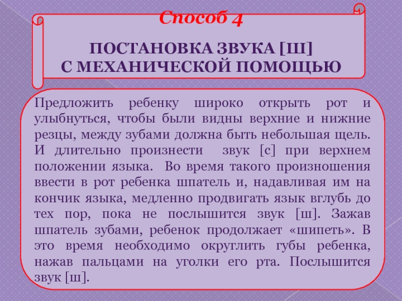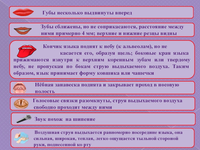 касается его, образуя щель; боковые края языка прижимаются изнутри к верхним коренным зубам или твердому небу, не пропуская по бокам струю выдыхаемого воздуха. Таким образом, язык принимает форму ковшика или чашечки
