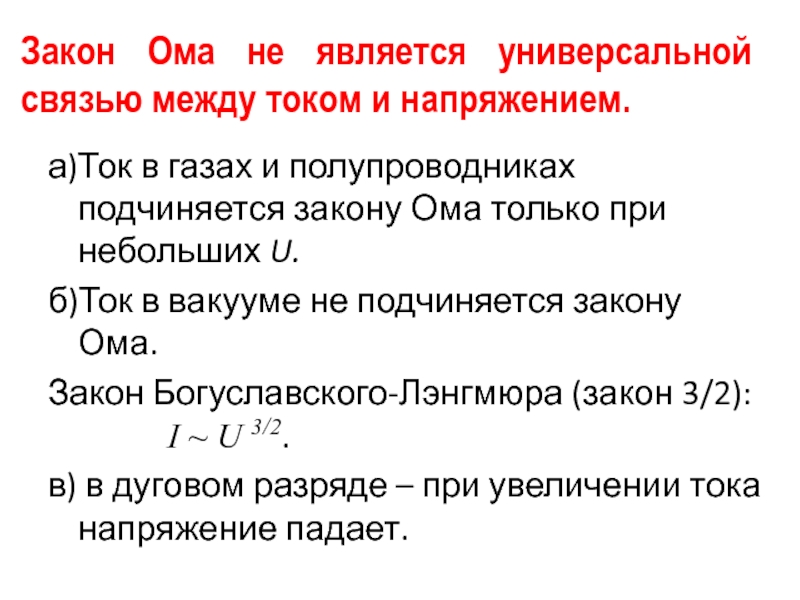 Слайд 15Закон Ома не является универсальной связью между током и напряжением.