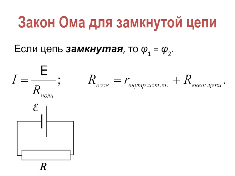 Слайд 24Закон Ома для замкнутой цепи