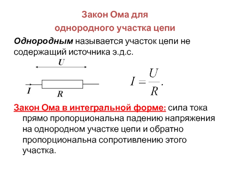 прямо пропорциональна падению напряжения на однородном участке цепи и обратно пропорциональна сопротивлению этого участка.