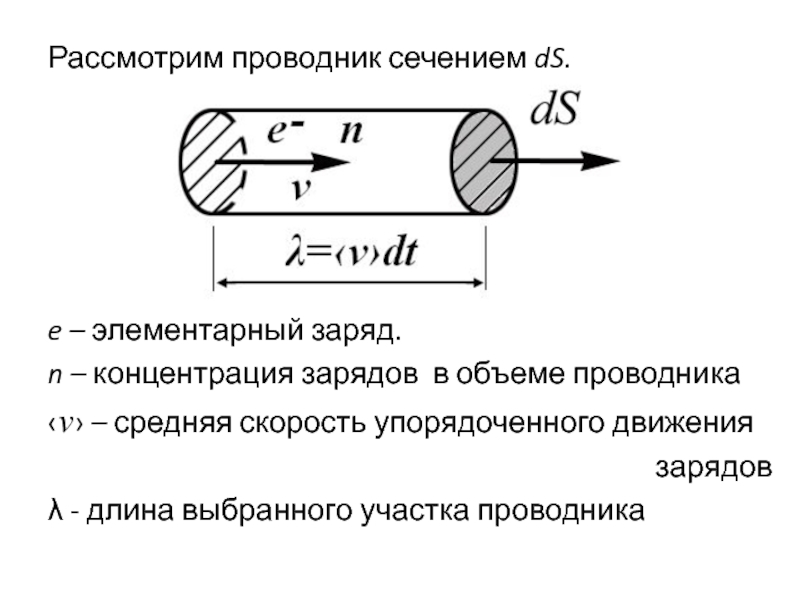 Слайд 5Рассмотрим проводник сечением dS.