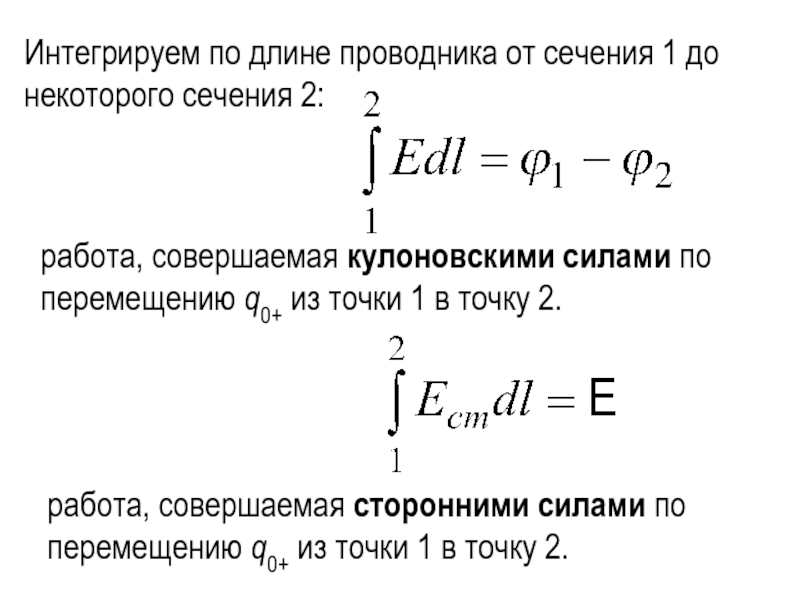 Интегрируем по длине проводника от сечения 1 до некоторого сечения 2:
