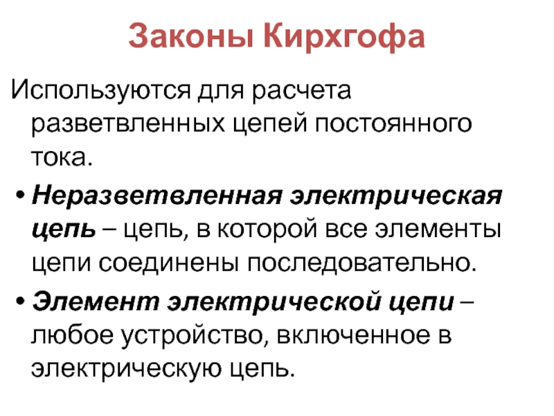Используются для расчета разветвленных цепей постоянного тока.