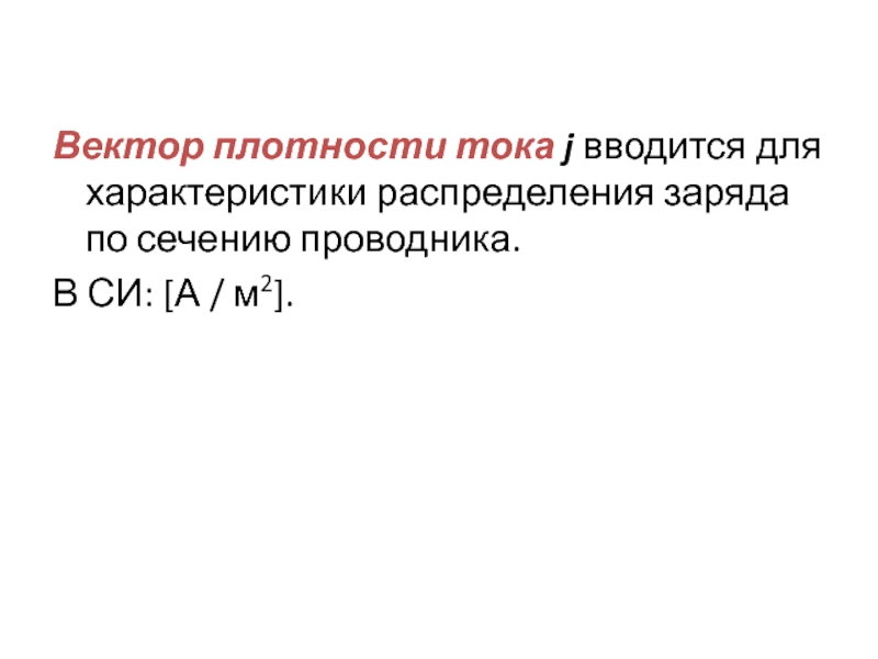 Слайд 2Вектор плотности тока j вводится для характеристики распределения заряда по