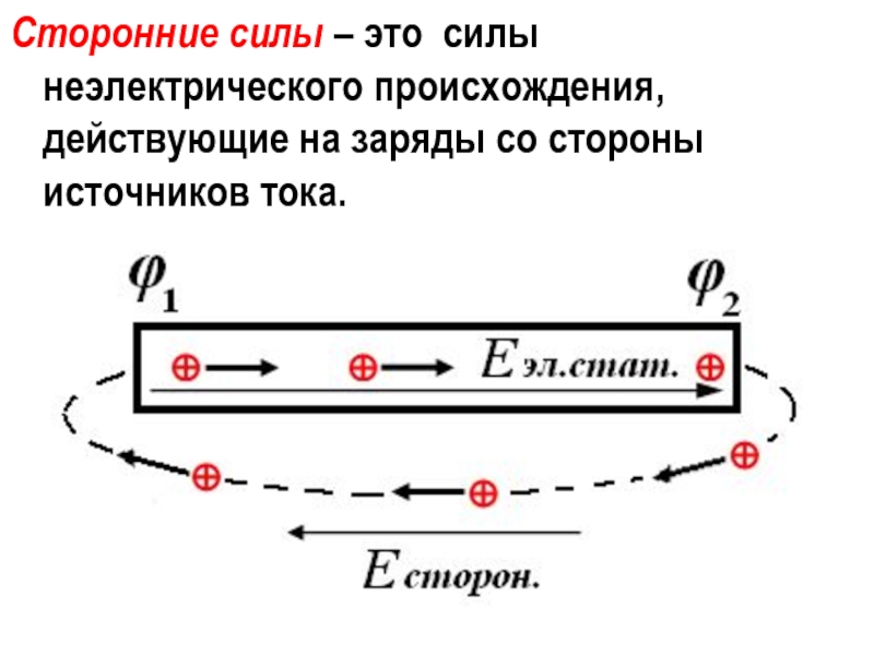 Слайд 9Сторонние силы – это силы неэлектрического происхождения, действующие на заряды